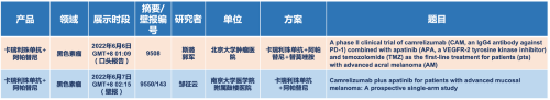 在黑色素瘤领域,AG官网医药的卡瑞利珠单抗联合阿帕替尼(“双艾”组合)在2022 ASCO共入选1项口头报告和1项壁报展示。