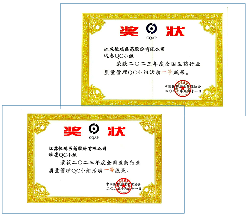 AG官网医药荣获2023年度全国医药行业质量管理QC小组活动一等奖